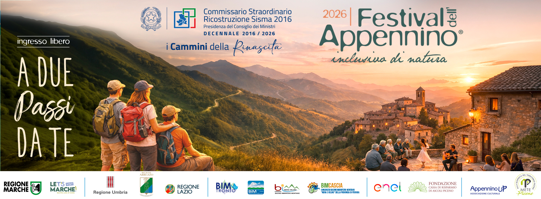 Si terrà mercoledì 29 aprile alle ore 12.00, presso la Sala Spadolini del Ministero della Cultura, la conferenza stampa di presentazione della XVII edizione del Festival dell’Appennino – Inclusivo di Natura. All’incontro interverranno: il ministro della Cultura, Alessandro Giuli, il Commissario Straordinario al sisma 2016, Guido Castelli e Luigi Contisciani, Presidente del BIM Tronto. Il Festival dell’Appennino torna dal 3 maggio all’11 ottobre 2026 con un programma che si sviluppa lungo sei mesi di eventi, coinvolgendo 28 comuni. Saranno 30 gli eventi che si svolgeranno in quattro regioni – Marche, Abruzzo, Lazio e Umbria – per un unico racconto di territori, comunità e identità. Giunto alla sua diciassettesima edizione, il Festival si presenta quest’anno in una veste speciale, profondamente legata al decennale del sisma del 2016, con l’obiettivo di offrire una visione di futuro alle aree interne dell’Appennino centrale attraverso una proposta integrata di comunicazione e promozione turistica. Il claim scelto per il 2026, “A due passi da te”, rappresenta un invito alla scoperta e al rilancio di territori ricchi di cultura, natura ed eccellenze enogastronomiche, protagonisti di una delle più rilevanti manifestazioni turistico-culturali del Centro Italia. Con questa iniziativa si intende riaffermare l’impegno istituzionale a sostegno delle aree interne dell’Appennino centrale, profondamente segnate dagli eventi sismici del 2016, promuovendo al contempo un percorso di rigenerazione territoriale, culturale e turistica basato sulla collaborazione tra comunità locali e istituzioni. L’evento rappresenterà inoltre un’importante occasione per illustrare pubblicamente il programma della nuova edizione e condividere le prospettive di sviluppo che il Festival mira a favorire.